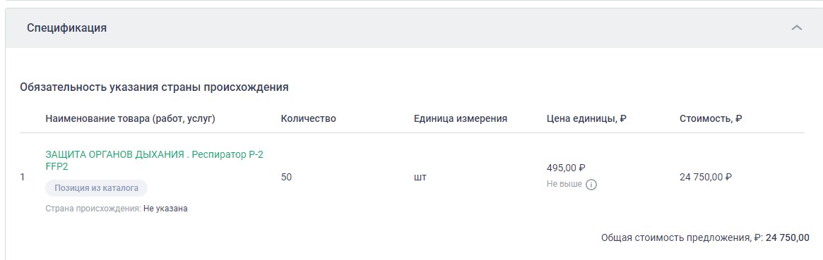 ✅ Квалификация завершена 📊 Общая информация: - Решение: ТЗП - Найдено позиций в тендере: 2 - Точных совпадений: 0 - Подтвержденные аналоги: 2 - Не найдено в каталоге: 0 - Найдено совпадений (exact+analog): 2 (100%) - Низкая уверенность матчинга (поз.): 0 - Конфликтные позиции (consistency): 0 💼 Детализация совпадений: 1. ЗАЩИТА ОРГАНОВ ДЫХАНИЯ . Респиратор P-2 [495.002] Найдено 3 вариантов: 1) Респиратор Р-2_ SKU: 101784 Совпадение: 45.8% (Похожее) 2) Респиратор Р-2 SKU: 69428 Совпадение: 45.4% (Похожее) 3) Респиратор РОУ SKU: 12271 Совпадение: 41.5% (Похожее) 2. Респиратор Р-2 FFP2 [50 шт] Найдено 3 вариантов: 1) Респиратор Р-2 SKU: 69428 Совпадение: 65.2% (Похожее) 2) Респиратор Р-2_ SKU: 101784 Совпадение: 63.6% (Похожее) 3) Респиратор гражданский фильтрующий Р-2 FFP3 R D/А/В/Е SKU: 63632 Совпадение: 52.3% (Похожее) 📋 Рекомендации: • Требуется подготовка ТЗП (Технико-Закупочное Предложение) • 2 поз. с аналогами — рекомендуется ручная верификация кандидатов.